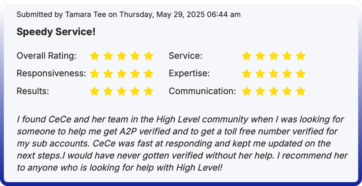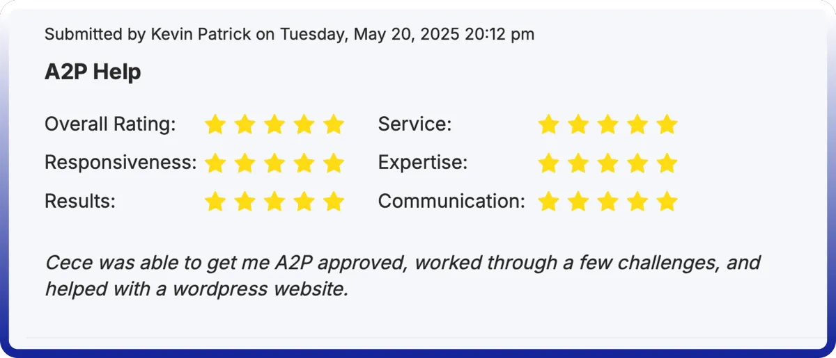 Here are some of the businesses & individuals we’ve partnered with to secure their A2P approval